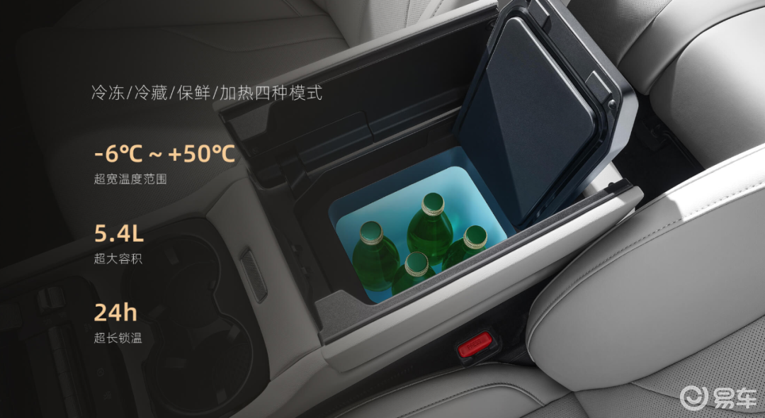 舒适方面,全系采用Nappa打孔真皮座椅,主驾支持3挡8点式按摩与电动4向腰托,前排加热/通风功能全系标配。新增5.4升车载冰箱,支持-6℃至50℃温度调节,后排15.6英寸2.5K娱乐屏与14扬声器音响系统,搭配手动遮阳帘营造豪华乘坐体验。