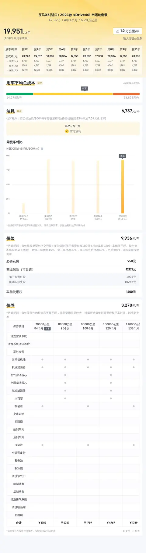 关于用车成本,根据我们估算,这辆车的年均综合用车成本约2万元左右。这里要说的是,这项支出跟车主的用车场景和使用强度有直接关系,所以这个费用并不是固定的。