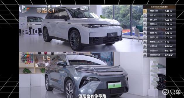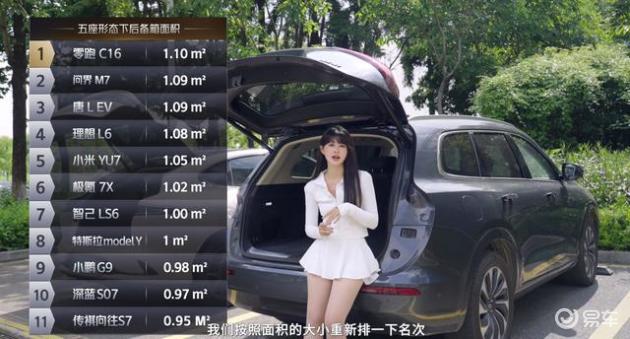 一向在空间方面表现优异的理想L6和唐L EV在此次测试中,虽然实测数据不弱(前者后备厢面积1.08平方米,后者1.09平方米),排名也较为靠前,但面对零跑C16这一强劲对手,实际可用的后备厢面积仍略逊一筹。