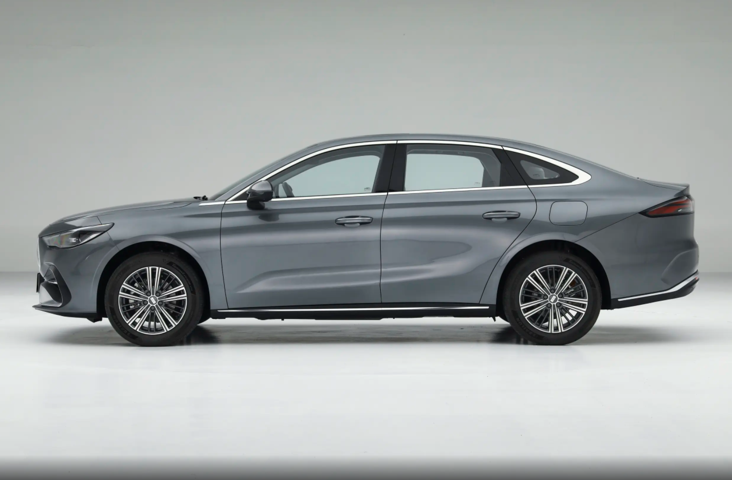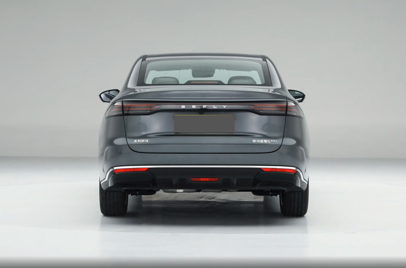 车身侧面就是一台传统三厢轿车的姿态,而实拍图中的这款车型为探索+高配版,用上了更显档次感的双色轮毂,轮胎规格则是215/55 R17。另外,贯穿整个车身的腰线,以及下包围内凹的处理,这些也会让银河星耀6的车侧显得更有层次感。尺寸方面的话,银河星耀6长宽高分别为4806/1886/1490mm,对比秦PLUS DM会有一定的优势,同时车身轴距达到了2756mm。