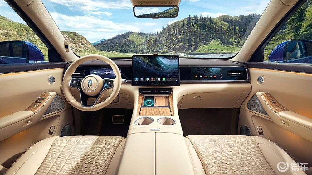内饰方面,昊铂HL采用了游艇环抱式座舱设计理念,车内配备8.8英寸全液晶数字仪表盘、17.3英寸悬浮式中控屏及27英寸超大尺寸全景HUD抬头显示系统,实现真正意义上的三屏智能联动。