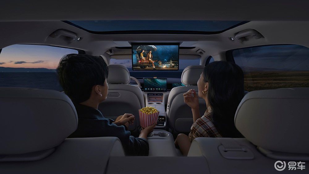 内饰方面,问界M7的车内配置全面升级,中控屏升级至16.1英寸3K分辨率高清屏幕,显示效果细腻逼真,并新增副驾驶娱乐屏和二排吸顶屏,满足全车乘客的娱乐需求。