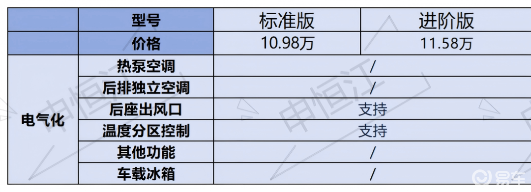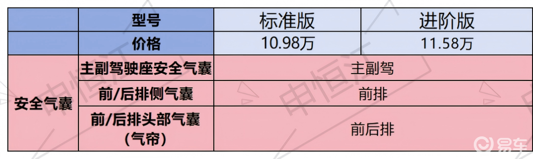 以上就是纯电版本的配置区别,总体来说进阶版比标准版多了很多配置。