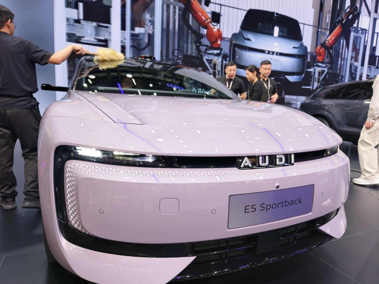 移步20.2号馆的上汽奥迪展台,“郑钦文同款奥迪E5 Sportback”被观众团团围住。与以往奥迪强调“科技感”不同,这次我感受到的是更具象的“年轻化”。