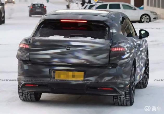 车身侧面,23英寸多辐式轮毂搭配红色制动卡钳,外扩的轮眉与低趴的车身姿态进一步强化了性能气场。隐藏式门把手和平滑的车侧设计,将风阻系数控制在了0.28Cd的优秀水平。车身高度较添越降低了120mm,更契合城市穿梭的需求。车尾部分,造型更显动态,给人一种轿跑SUV的视觉感受。