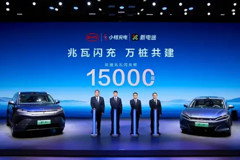 二代站点的建站成本有所下降,适配电网改造更灵活。目前比亚迪已和小桔充电、新电途等平台合作,2025年5月宣布共建15000座兆瓦闪充桩。