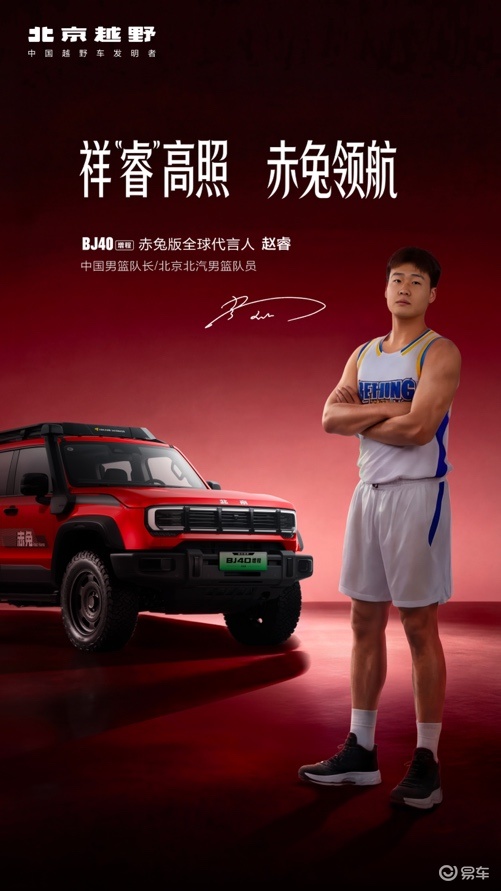 中国男篮队长赵睿代言BJ40增程赤兔版,北京越野“中国大环线”正式启动好马配英雄,猛将需赤兔。中国男篮队长、北京北汽男篮核心成员赵睿成为BJ40增程赤兔版全球代言人。BJ40增程赤兔版受邀将在大年初一,登上北京春晚舞台,代表北京越野给全国观众拜年。