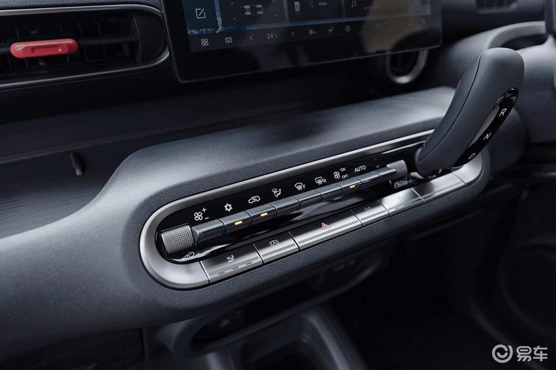 内饰方面,新车整体采用了简约的设计,经典的三幅式方向盘搭配大尺寸的悬浮式中控屏幕。因车身尺寸小巧,新车主副驾座椅采用贯通设计,排挡杆设计在中控台处。此外我们能看到,新车在空调出风口处保留了实体按键,副驾驶处还设有红色元素进行点缀。
