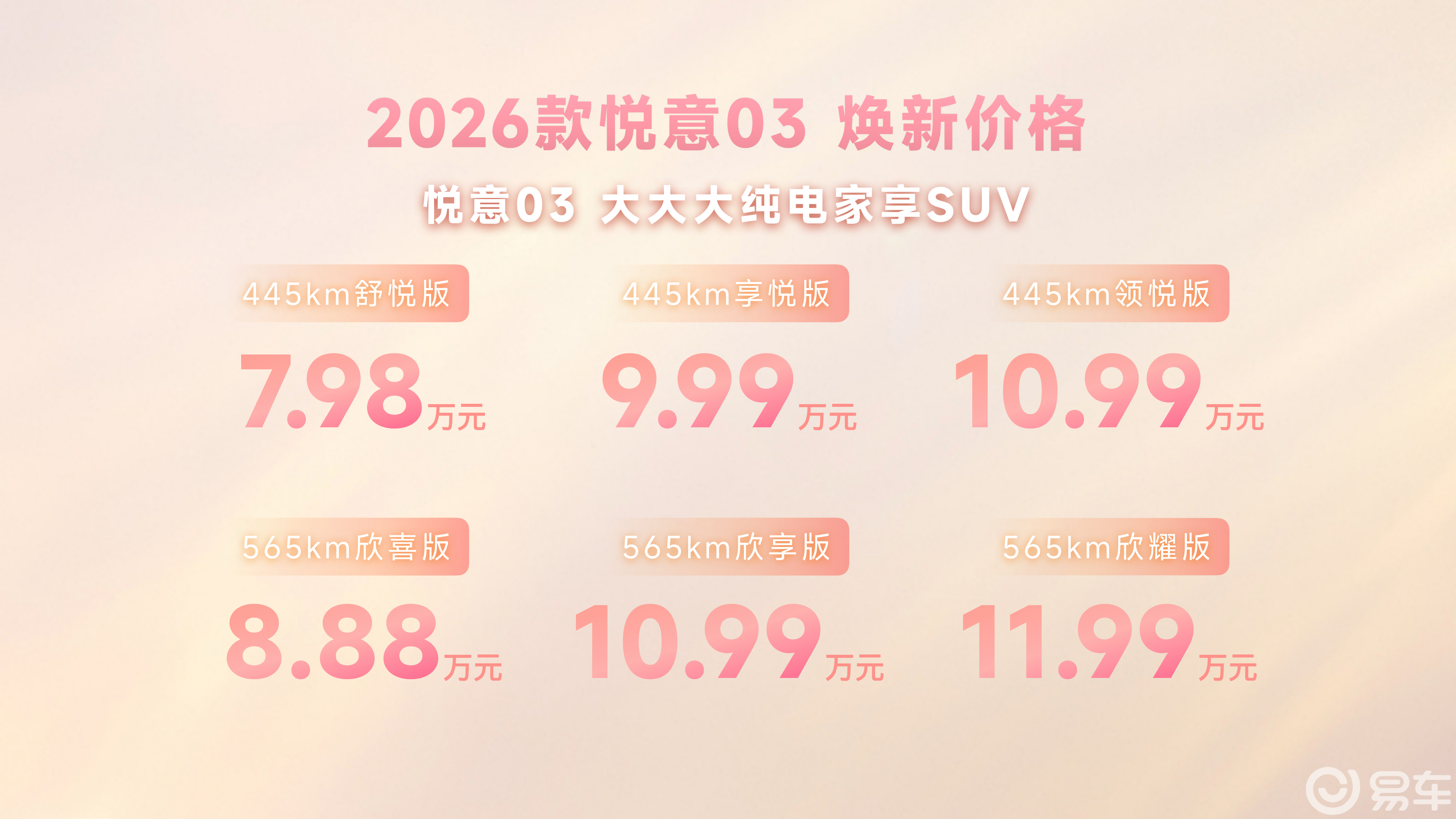 记者手记:谁在定义“家用好车”?在7.98万-11.99万元这个价格区间,纯电SUV的竞争早已红海一片。但2026款悦意03的上市,让我们看到了车企在消费者画像上的一次精准聚焦。