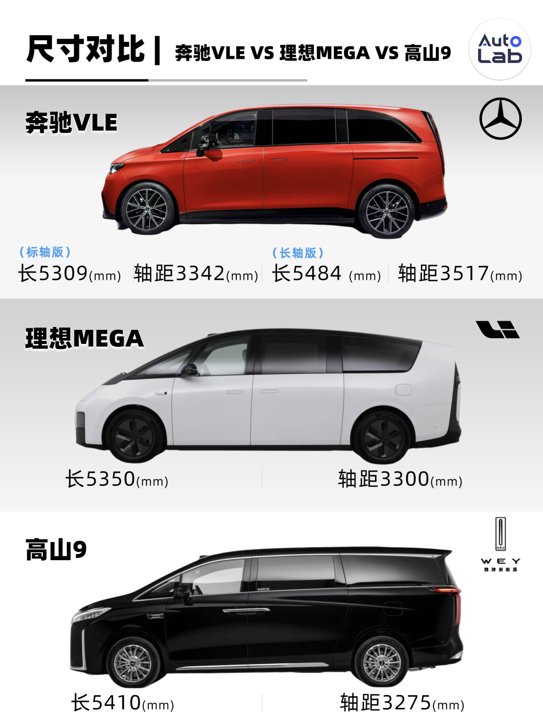 单看标轴版,尺寸已超越理想MEGA、魏牌高山9、腾势D9、别克至境世家等多款热门纯电MPV。