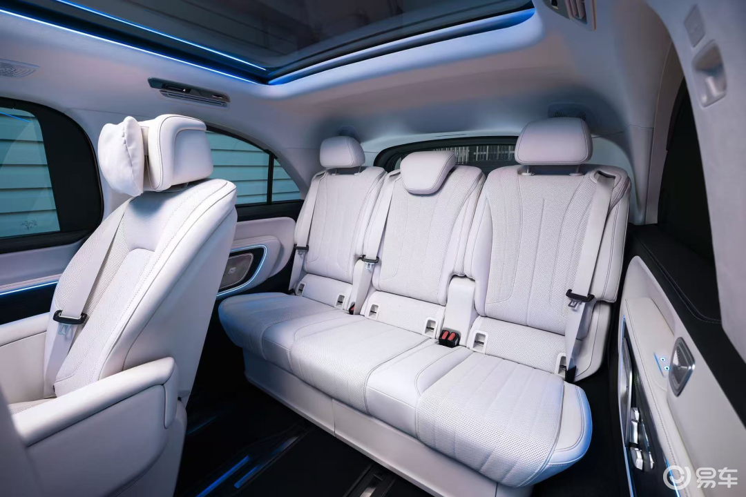 三排座椅电动调节、座椅通风/加热/按摩、二排VIP座椅、中控台双温控冷暖箱、31.3英寸8K全景屏、从B柱延伸到车尾带遮阳帘的全景天幕。