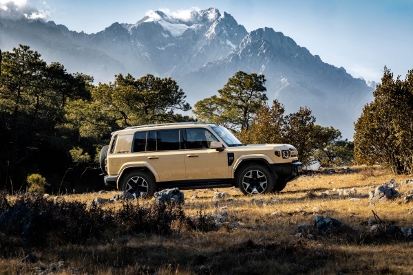 车身超5米,搭配近1:1宽高比、直立A柱,姿态挺拔,勾勒硬派风格比例,超低窗线与高占比侧窗,营造通透视野。
