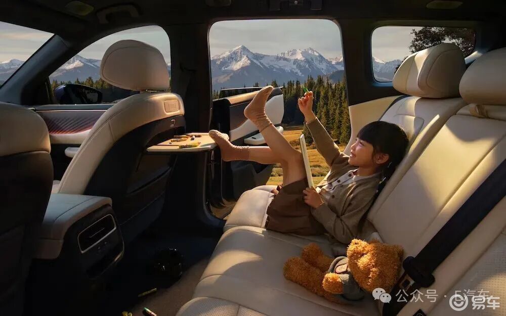 其1934mm的有效室内长、1285mm的有效室内高,以及83%的超高得房率,让车内空间利用率拉满。后排乘客在头顶放上一颗大榴莲还有余量,被官方戏称为顶「榴」空间;后排膝部空间达到760mm,即超过三拳的宽度,甚至衍生出了新的车内空间计量单位——三折叠手机;450mm后排过道宽度+纯平地台设计让中间乘客无需蜷缩,哪怕是调换座位也可以从容走过。也就是说,坐在后排的无论是老人还是孩子,都能获得舒适的乘坐体验。