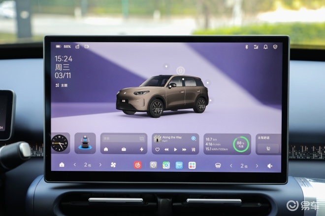零跑A10的车机在同级车中并不多见,全系标配14.6英寸2.5K悬浮式中控屏+8.88英寸液晶仪表,屏幕显示细腻、操作流畅,芯片配置上中低配搭载高通8155芯片,顶配升级为高通8295旗舰座舱芯片,算力更强、响应更快,全系接入通义千问AI语音大模型,支持多模态识别、方言识别、声纹识别和连续多轮对话,还支持整车长期免费OTA升级,同时配备ICCOA Carlink 2.0与HUAWEI HiCar 4.0车手互联功能,部分版本还有12扬声器7.1环绕声道音响、无麦K歌功能,智能体验和娱乐性甚至能和更高价位的车型掰掰手腕。