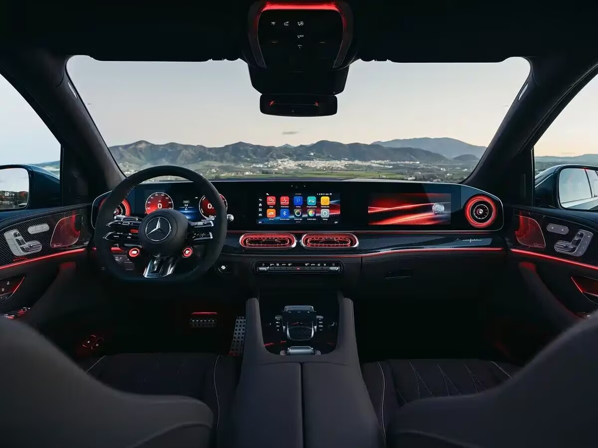三联屏打造沉浸式科技体验坐进车内,那才叫惊喜!核心就是这个MBUX Superscreen超联屏,12.3英寸仪表、14英寸中控、14英寸副驾屏,三块大屏连一起,科技感直接拉满。座椅用的是全新纹理材质,缝线特别精致,还带按摩功能,高配车型还有后排独立娱乐、多色氛围灯,不管是开车的还是坐车的,体验感直接拉满。车内到处都是软质包裹,再配上木纹或者金属饰板,奔驰的豪华做工那味儿一点没丢。至于AMG GLE 53 Hybrid,专属运动方向盘、金属换挡拨片、红色缝线加碳纤维饰板,运动感直接拉满,进一步凸显运动风格。
